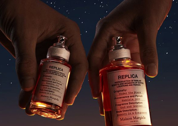 Además de sus colecciones de moda, Maison Margiela desarrolla una reconocida línea de perfumes. Su serie “Replica” destaca por recrear momentos, lugares y sensaciones concretas, convirtiendo cada fragancia en un recuerdo encapsulado.