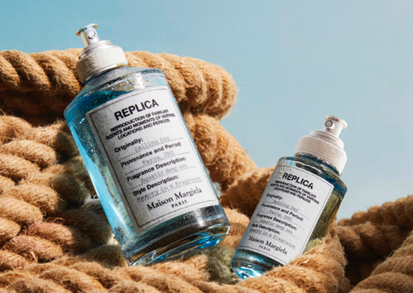 Además de sus colecciones de moda, Maison Margiela desarrolla una reconocida línea de perfumes. Su serie “Replica” destaca por recrear momentos, lugares y sensaciones concretas, convirtiendo cada fragancia en un recuerdo encapsulado.